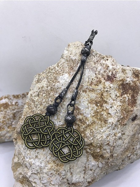 Gümüş materyalden üretilmiş olup, dayanıklılığı ve parlaklığı ile dikkat çeker; Sarı aşk düğümü tasarımı, klasik ve zamansız bir görünüm sunar; Oksitli detaylar ile zenginleştirilmiş ikili püskül, estetik bir dokunuş katarken aynı zamanda zarif bir aksesuar olarak öne çıkar; Unisex tasarımı sayesinde hem kadınlar hem de erkekler tarafından rahatlıkla kullanılabilir;
