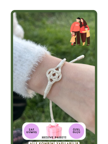 Kazaziye El Örmesi Şems Düğümü Asansörlü Gümüş Çocuk Bileklik Anne-Kız Kombini 1000 Ayar BIL101GUKIZ