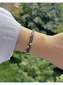• Tasarım: İki sıra elde örülmüş siyah oksitli zincir ve parlak Dorika boncuklar.