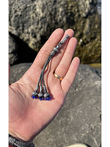 Gümüş malzeme kullanımı, hem şıklığı hem de dayanıklılığı bir arada sunar ve uzun süreli kullanım için idealdir; Etnik desen detayları ile zenginleştirilmiş tasarım, kültürel motiflerin zarif bir yansımasını taşır ve göz alıcı bir görünüm sağlar; Üçlü püskül tasarımı, klasik ve modern çizgileri birleştirerek estetik bir dokunuş katarken, kullanışlılık açısından da pratiklik sunar;