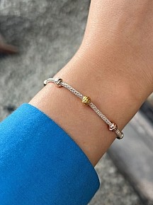 Gümüş malzeme kullanımı, şıklığı ve dayanıklılığı bir arada sunar; Dorika boncuk detayları ile göz alıcı bir parlaklık ve zarif bir görünüm kazandırır; Her bileklik, el işçiliğiyle özenle işlenmiş detaylara sahiptir, bu da onu özel günlerinizde vazgeçilmez bir aksesuar haline getirir;